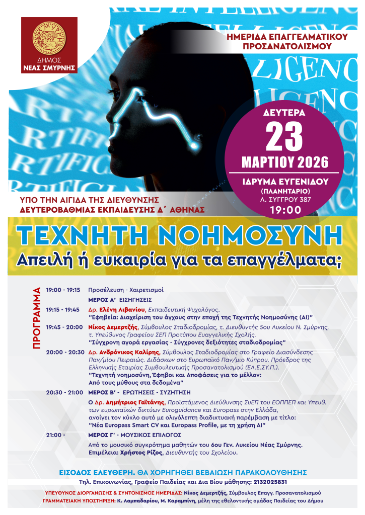 • Τεχνητή Νοημοσύνη: Απειλή ή Ευκαιρία για τα επαγγέλματα ; (3/20/2026)