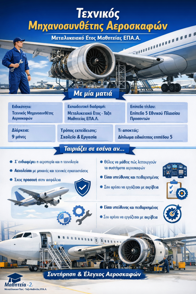 Τεχνικός Μηχανοσυνθέτης Αεροσκαφών – Μεταλυκειακό Έτος Μαθητείας ΕΠΑ.Λ.