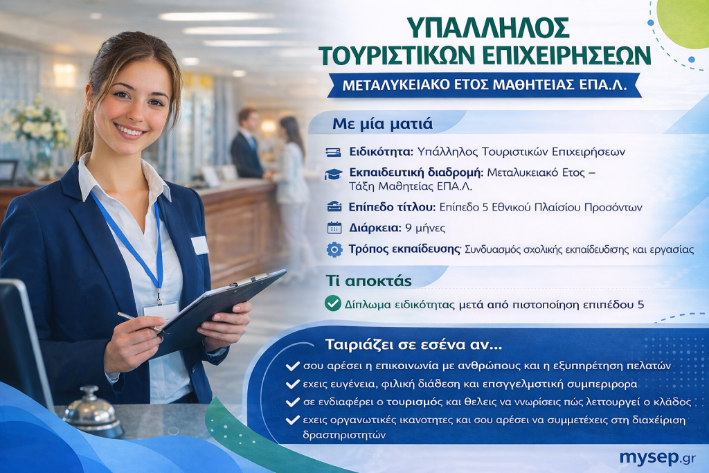 Υπάλληλος Τουριστικών Επιχειρήσεων – Μεταλυκειακό Έτος Μαθητείας ΕΠΑ.Λ.