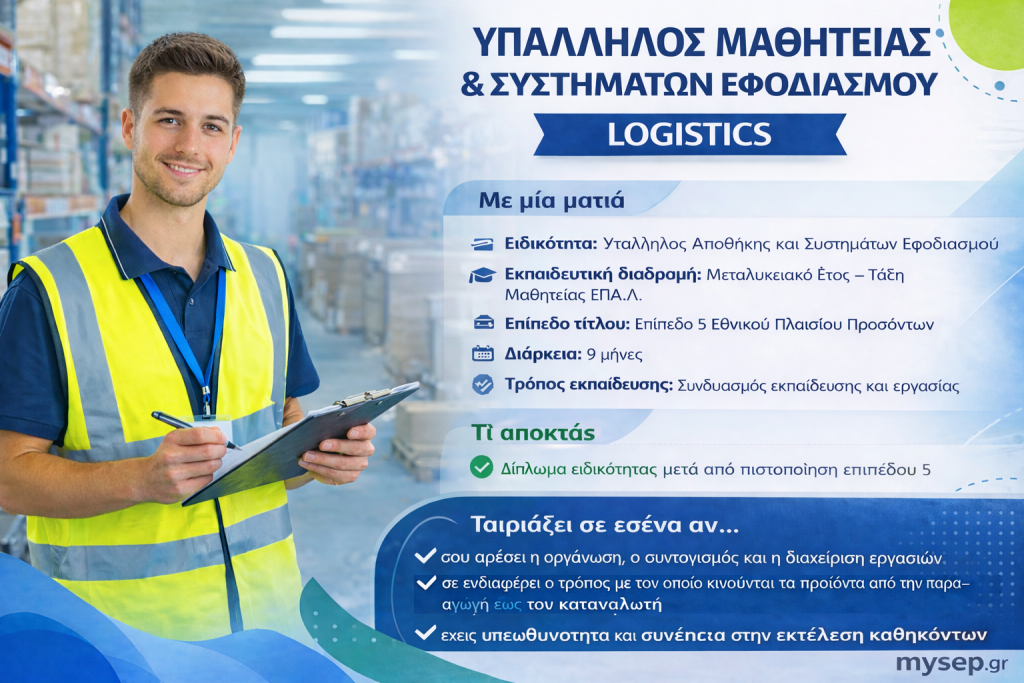 Υπάλληλος Αποθήκης και Συστημάτων Εφοδιασμού (Logistics) – Μεταλυκειακό Έτος Μαθητείας ΕΠΑ.Λ.