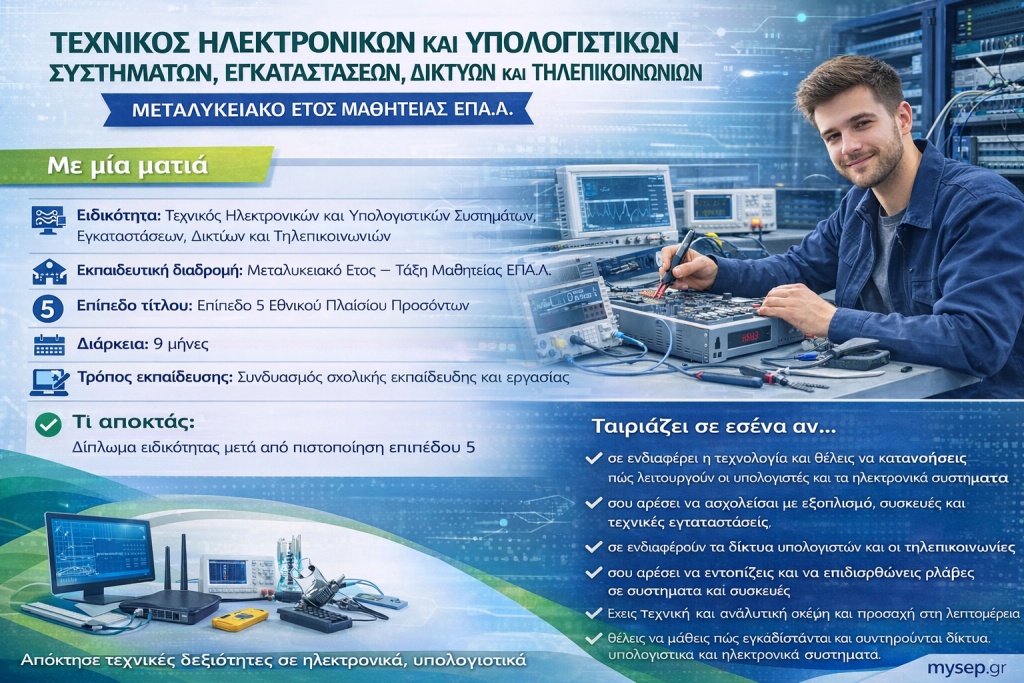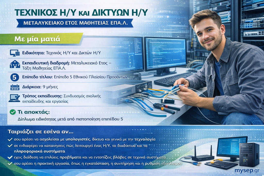 Τεχνικός Η/Υ και Δικτύων Η/Υ – Μεταλυκειακό Έτος Μαθητείας ΕΠΑ.Λ.