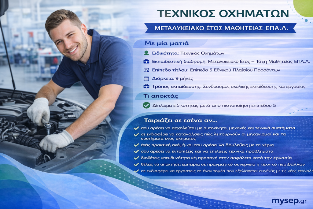 Τεχνικός Οχημάτων – Μεταλυκειακό Έτος Μαθητείας ΕΠΑ.Λ.