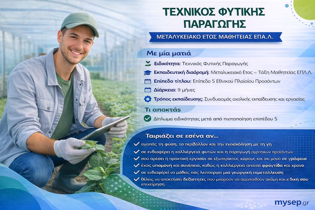 Τεχνικός Φυτικής Παραγωγής – Μεταλυκειακό Έτος Μαθητείας ΕΠΑ.Λ.