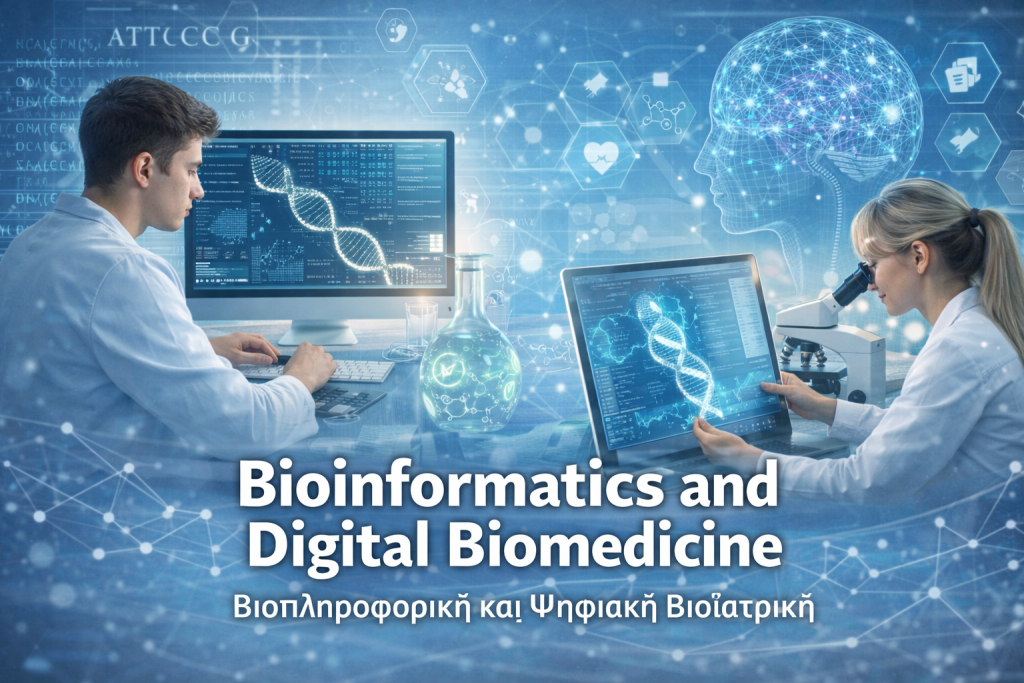 Το Διιδρυματικό Πρόγραμμα Μεταπτυχιακών Σπουδών (ΔΠΜΣ) «Bioinformatics and Digital Biomedicine» έχει ως στόχο την ανάπτυξη της επιστημονικής γνώσης και των δεξιοτήτων που απαιτούνται για την αξιοποίηση προηγμένων τεχνολογιών στη βιοϊατρική και την ανάλυση μεγάλων δεδομένων στην υγεία. Το πρόγραμμα εστιάζει στη διασύνδεση της βιοπληροφορικής, της τεχνητής νοημοσύνης και της εξατομικευμένης ιατρικής, επιτρέποντας στους φοιτητές να κατανοήσουν τη σύνθετη αλληλεπίδραση μεταξύ των σύγχρονων υπολογιστικών εργαλείων και των κλινικών εφαρμογών.