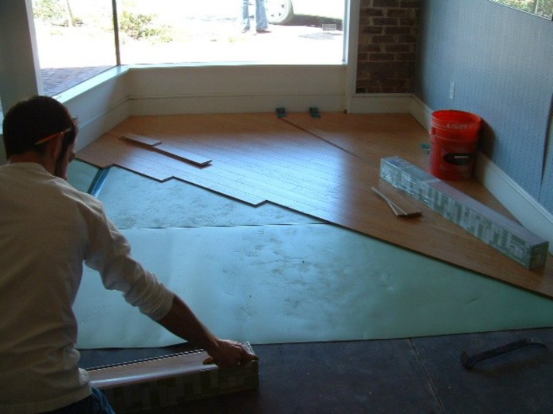 τοποθετεί τα ξύλινα παρκέτα με ακρίβεια,